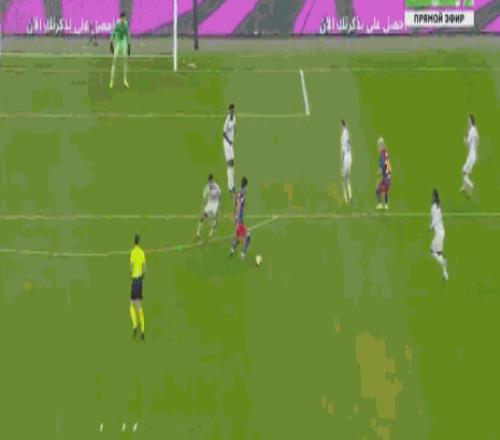 上半时补时阶段,皇马左路进攻,维尼修斯中线前拿球推进硬刚孔德,维尼修斯外道超车推进,孔德高速回追,和队友形成包夹再次拦住维尼修斯,不料却被维尼修斯再次硬突,一个穿裆甩开孔德,维尼修斯内切到小禁区前沿冷静推射远角得手,皇马1:1扳平比分。2分钟,巴萨中路快速反击,佩德里禁区弧顶前送出手术刀式直塞,莱万反越位成功突入禁区获得超近距离单刀,面对出击的门将库尔图瓦,莱万一记挑射得手,巴萨2:1再次取得领先。
