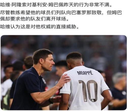 就在西超杯决赛后,传出主教练希望球员向巴萨致敬,但姆巴佩要求队友离开球场,被认为是对教练权威的公然挑战!