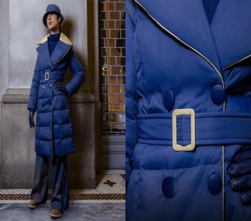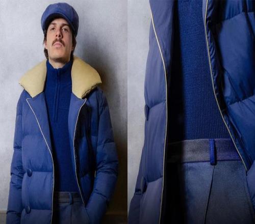 礼仪制服采用了本届冬奥会视觉形象中主打的蓝色调,和颁奖台的配色一致。帽子、针织衫、长裤、大翻领长款羽绒服、棕色户外靴、蓝色皮手套,整体简洁优雅,也强调实用性与舒适性,很体现优雅的意式风格。