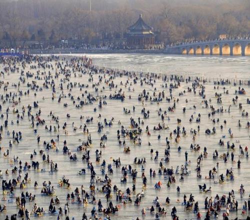2026年1月31日,北京颐和园昆明湖冰场迎来客流高峰,市民游客享受冰上乐趣。视觉中国 图